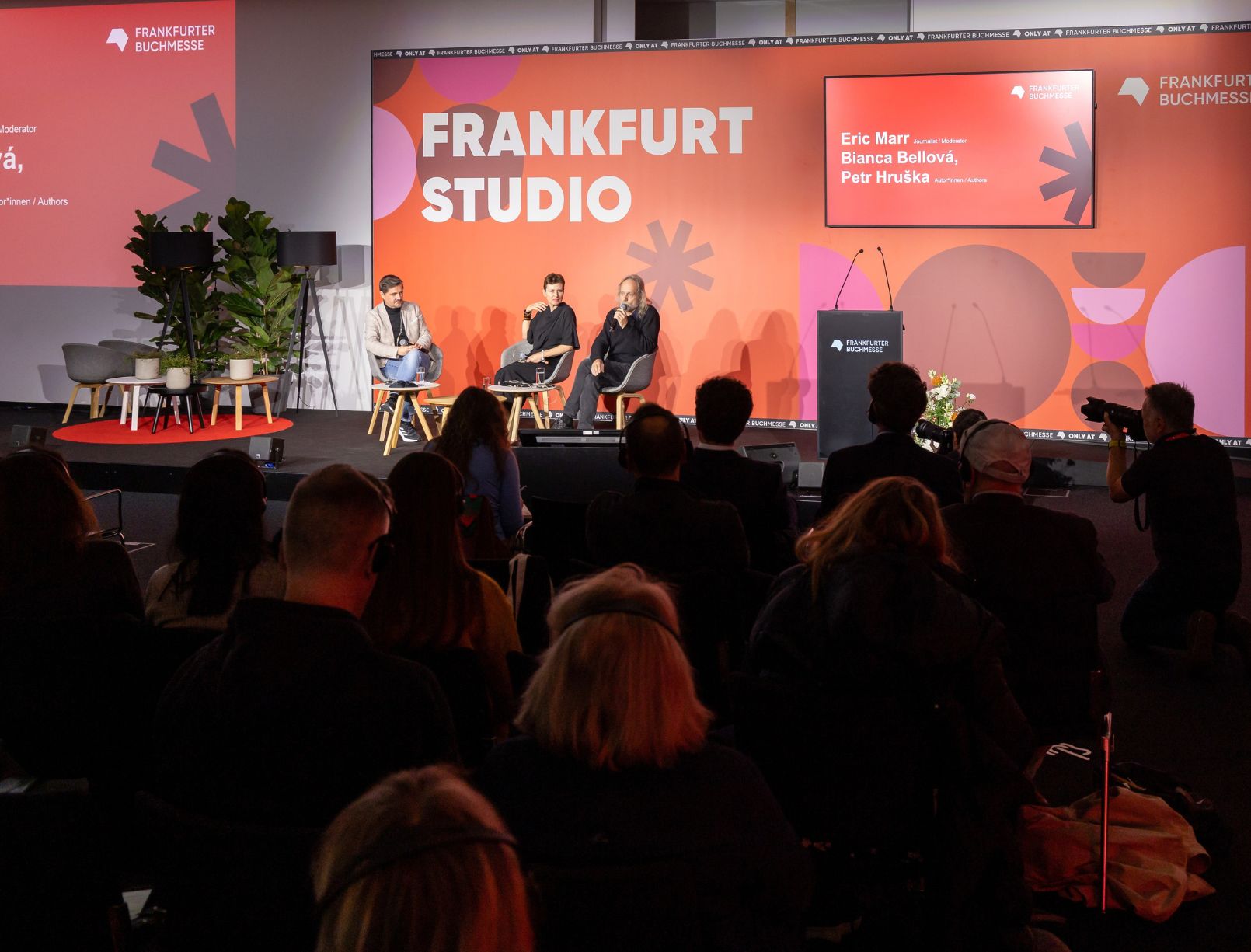 Na závěr publicista a moderátor Eric Marr debatoval s Biancou Bellovou a Petrem Hruškou o roli literatury v současném světě.
