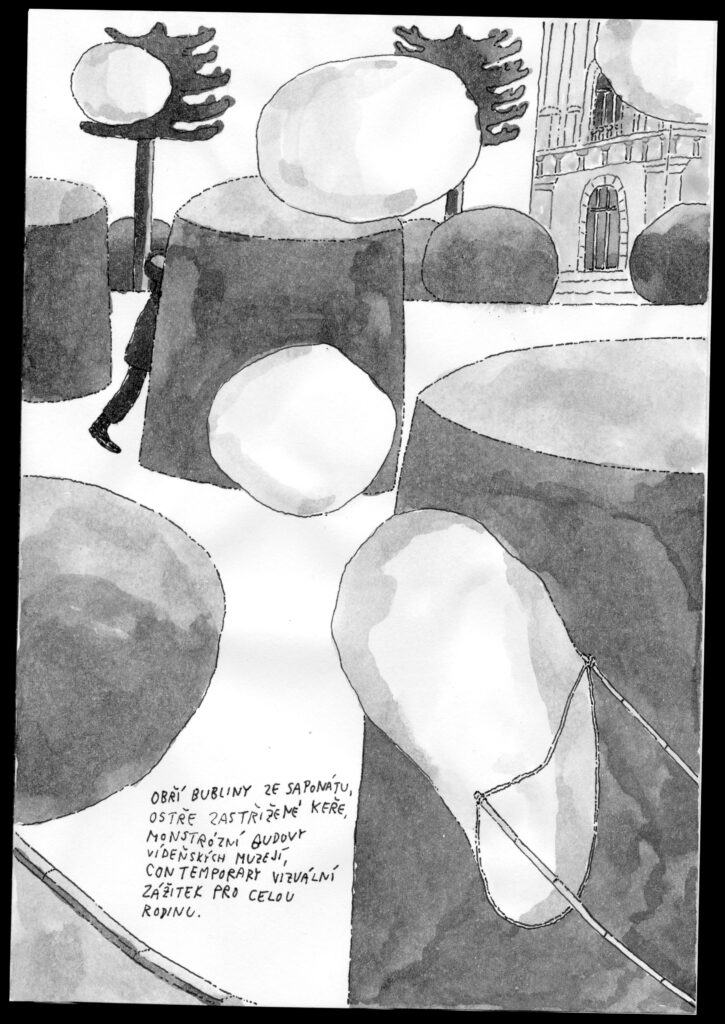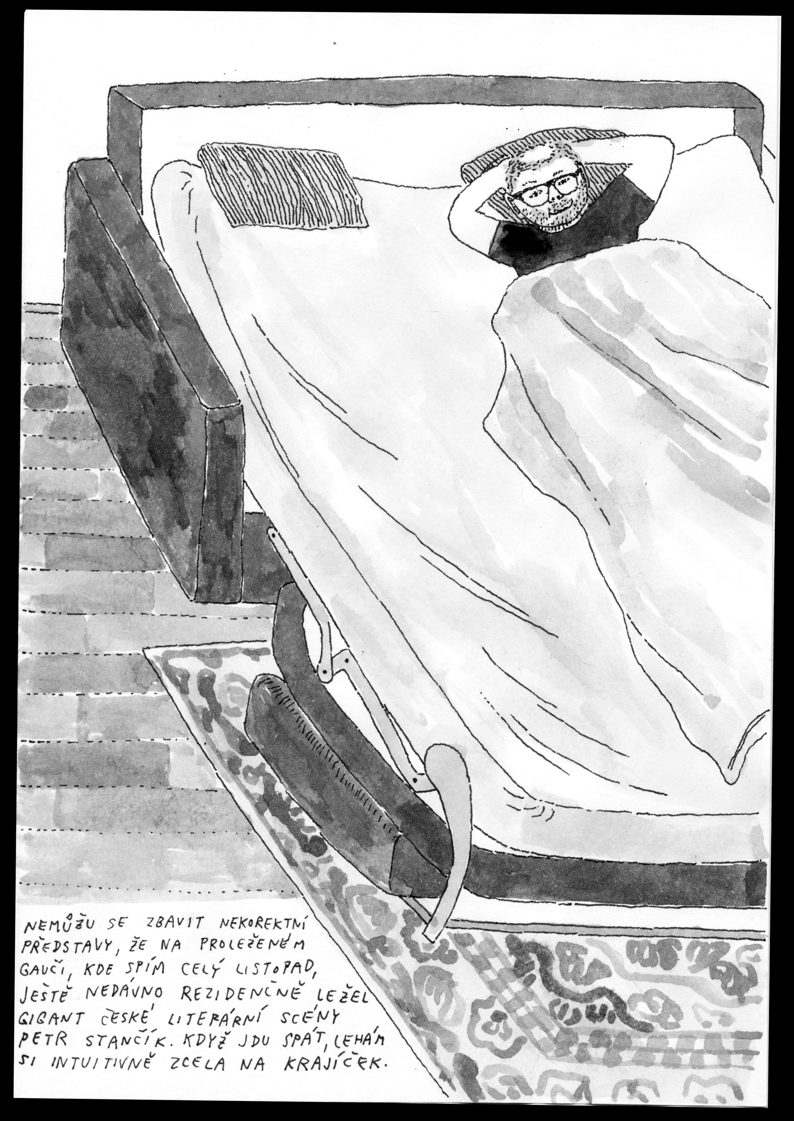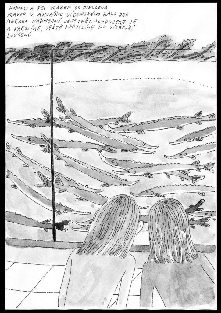 „Jsou různé způsoby, jak vyplnit pauzy, marné chvilky, desetiminutovky před odchodem… Dá se kouřit, cvičit na záda, scrollovat, listovat knihou. Měla jsem v Mikulově na stole štůsek papírů a krátké melancholické prostoje jsem překonávala deníkovým kreslením,“ píše ilustrátorka Magdalena Rutová, která strávila listopad v mikulovském spisovatelském bytě. Podívejte se na její kreslenou reportáž z pobytu.